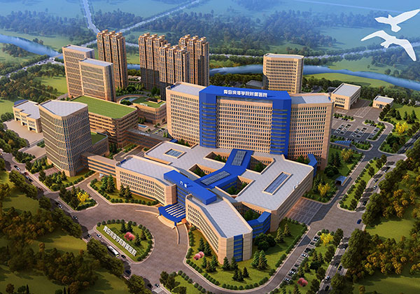 项目简介:医院由青岛滨海学院投资建设,位于青岛西海岸新区古镇口融合区,计划总投资28.6亿元,占地226亩,总规划建设面积37万平方米,于2018年7月开工建设,计划2019年竣工。医院紧邻大珠山风景区,依山傍海风光宜人,将解决住院床位1800张。项目主要建设内容包括住院楼、门诊楼等,规划设置临床科室37个,医技、辅助科室16个,住院床位1800张,员工1800人;